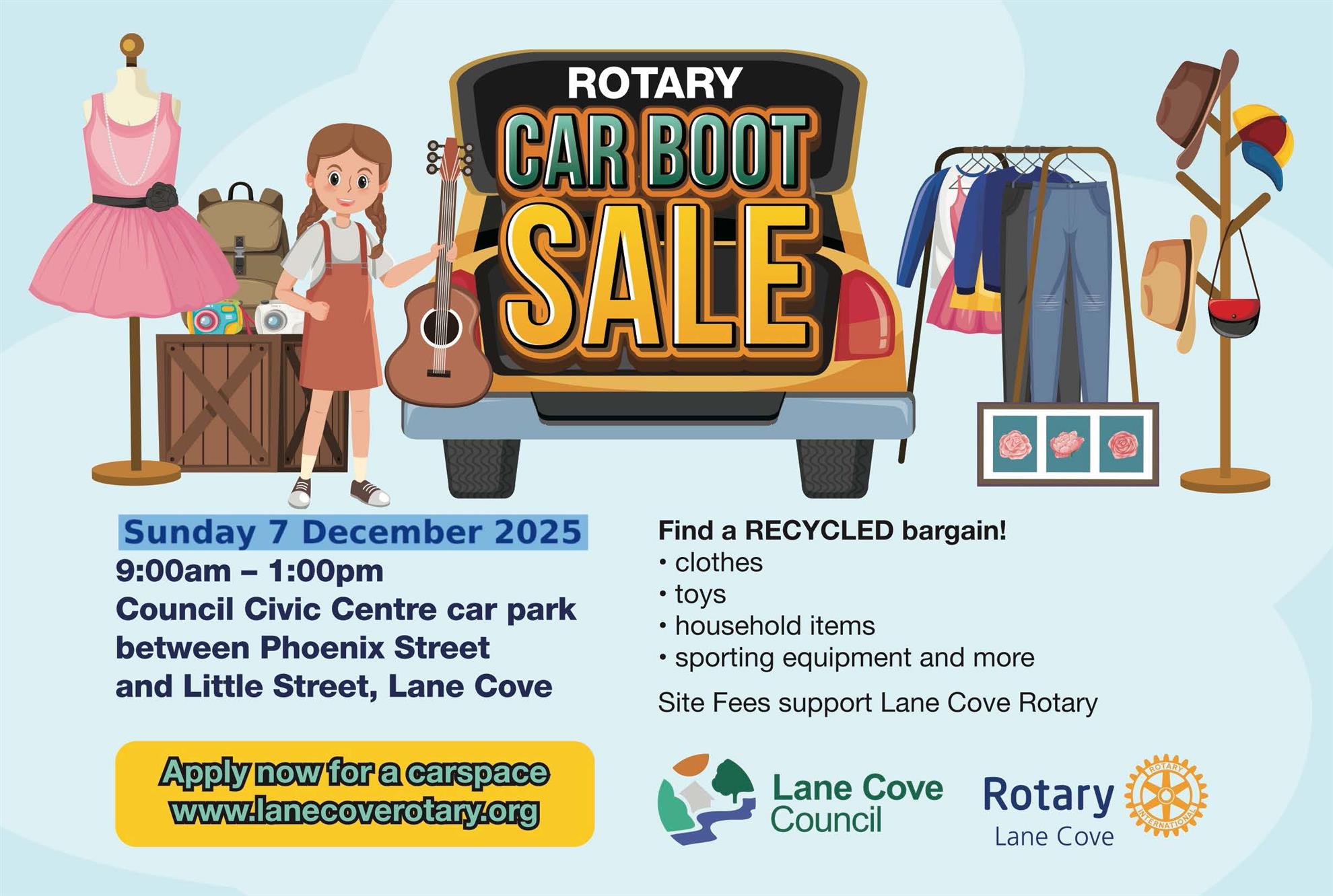 The goods may be sold from the boot of a vehicle, a table or racks within the allocated site. This event is not for the purpose of business/commercial traders. Items being sold must be second hand.